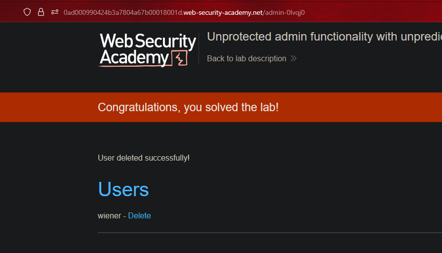 Funcionalidad admin con URL impredecible || Unprotected admin functionality with unpredictable URL