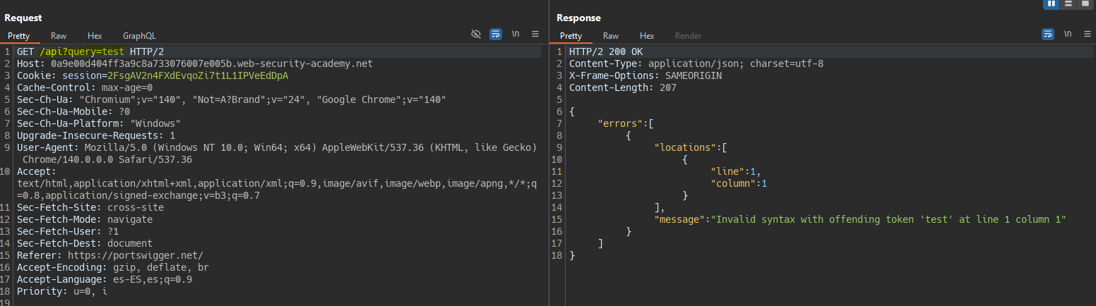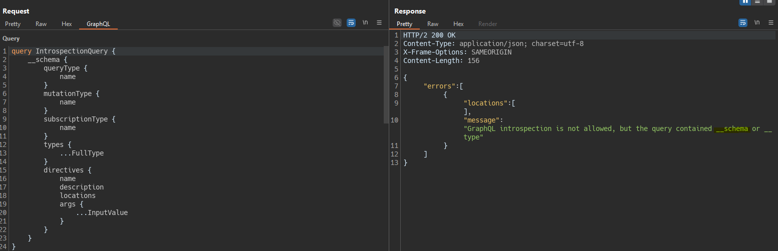 We see a request to change the email in a GraphQL API. Using JSON syntax we could not exploit the CSRF.