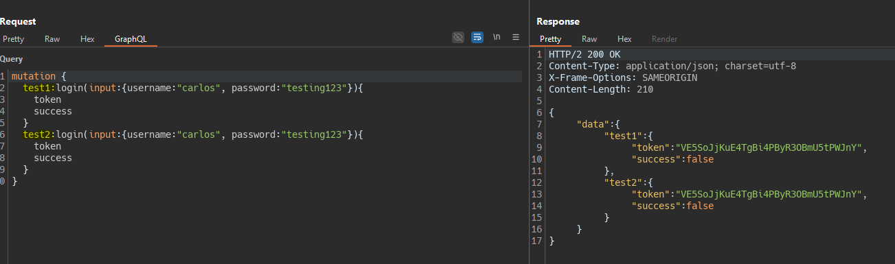 bruteforce0:login(input:{password: "123456", username: "carlos"}) {