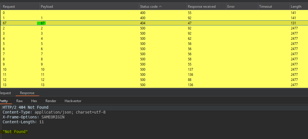 Con la funcionalidad de ‘intruder’ hacemos un escaneo de puertos internos. En el escaneo encontramos el puerto 67 abierto.