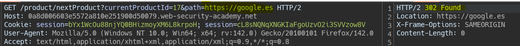 En la función ‘Next product’ encontramos que el parámetro ‘path’ es vulnerable a Open Redirect.